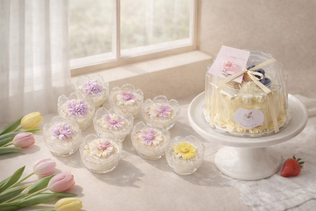 Eemaldatavate lilledega käsitööküünlad.