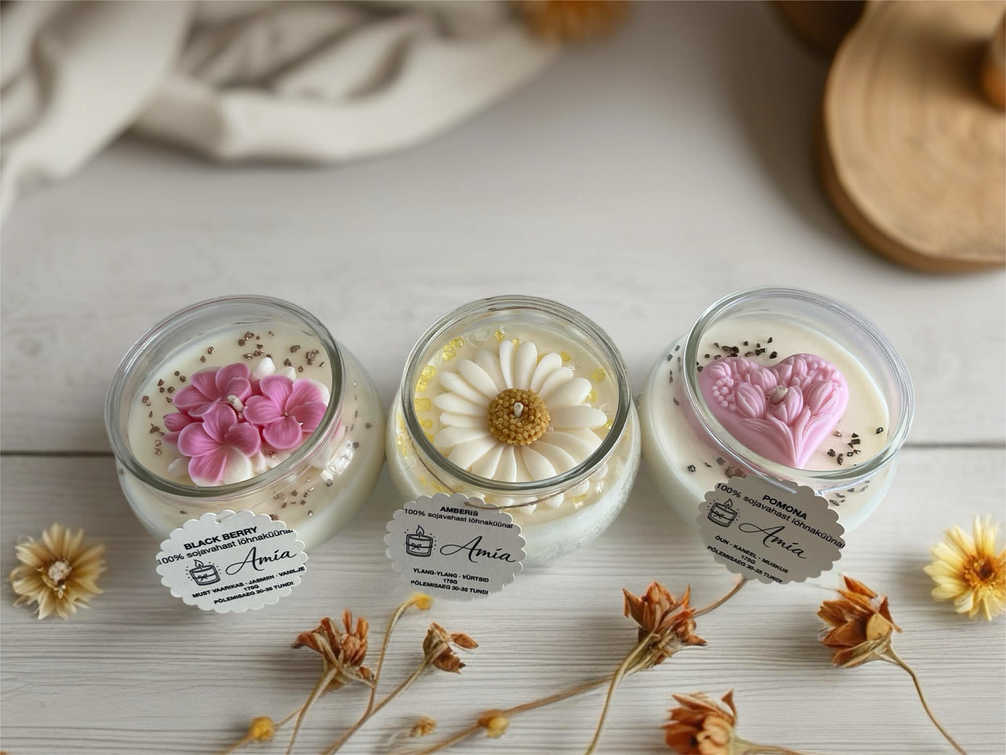 100% sojavahast käsitöö küünalde valik