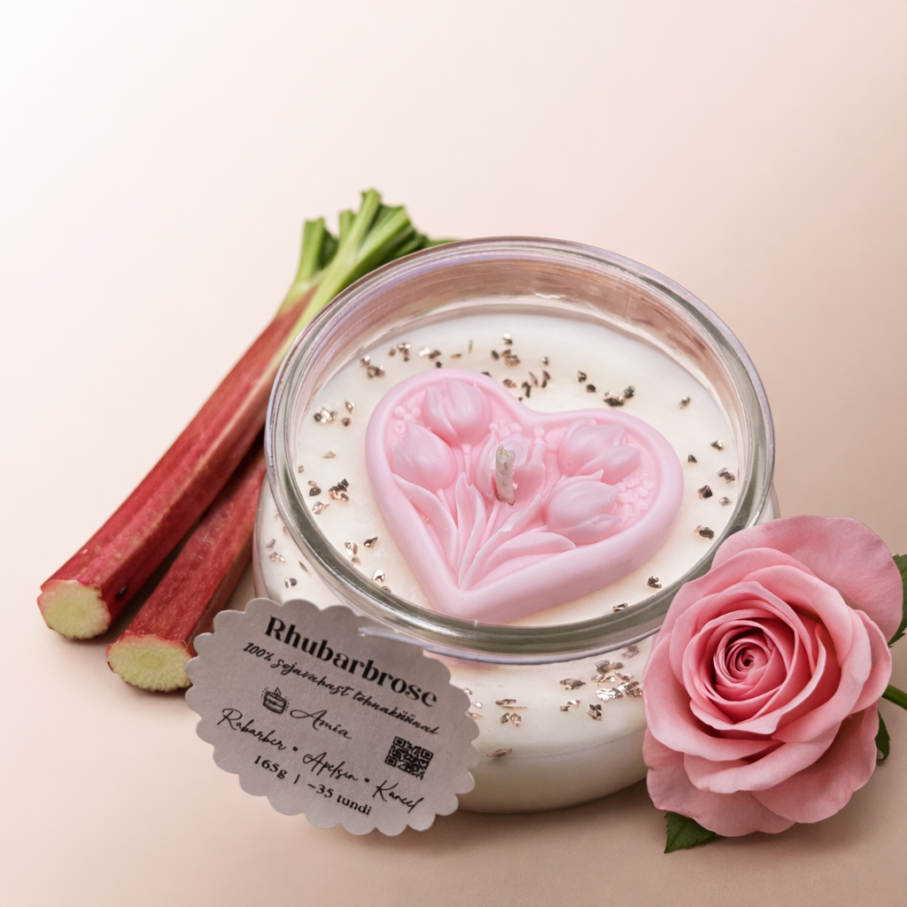 Rhubarbrose on särtsakas ja romantiline aroom, kus hapukas rabarber kohtub õrna roosi elegantsiga. Lõhn avaneb värske ja mahlase puuviljasusega, mis annab kiiresti ruumi pehmele lillelisele südamele. Tulemuseks on tasakaalukas, soe ja kergelt magus aroom, mis jääb ruumi õrnalt ja meeldivalt püsima.