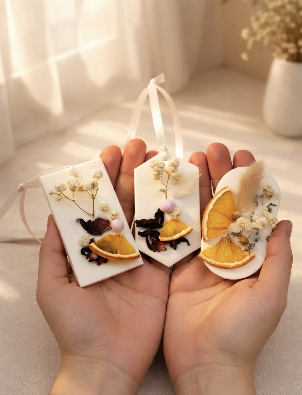 Lõhnavahaplaadid on kaunid ja praktilised lõhnastajad, mis toovad ruumi meeldiva ja tasakaaluka aroomi. Iga plaat on käsitööna valmistatud ning sobib ideaalselt nii kodu lõhnastamiseks kui ka kingituseks.